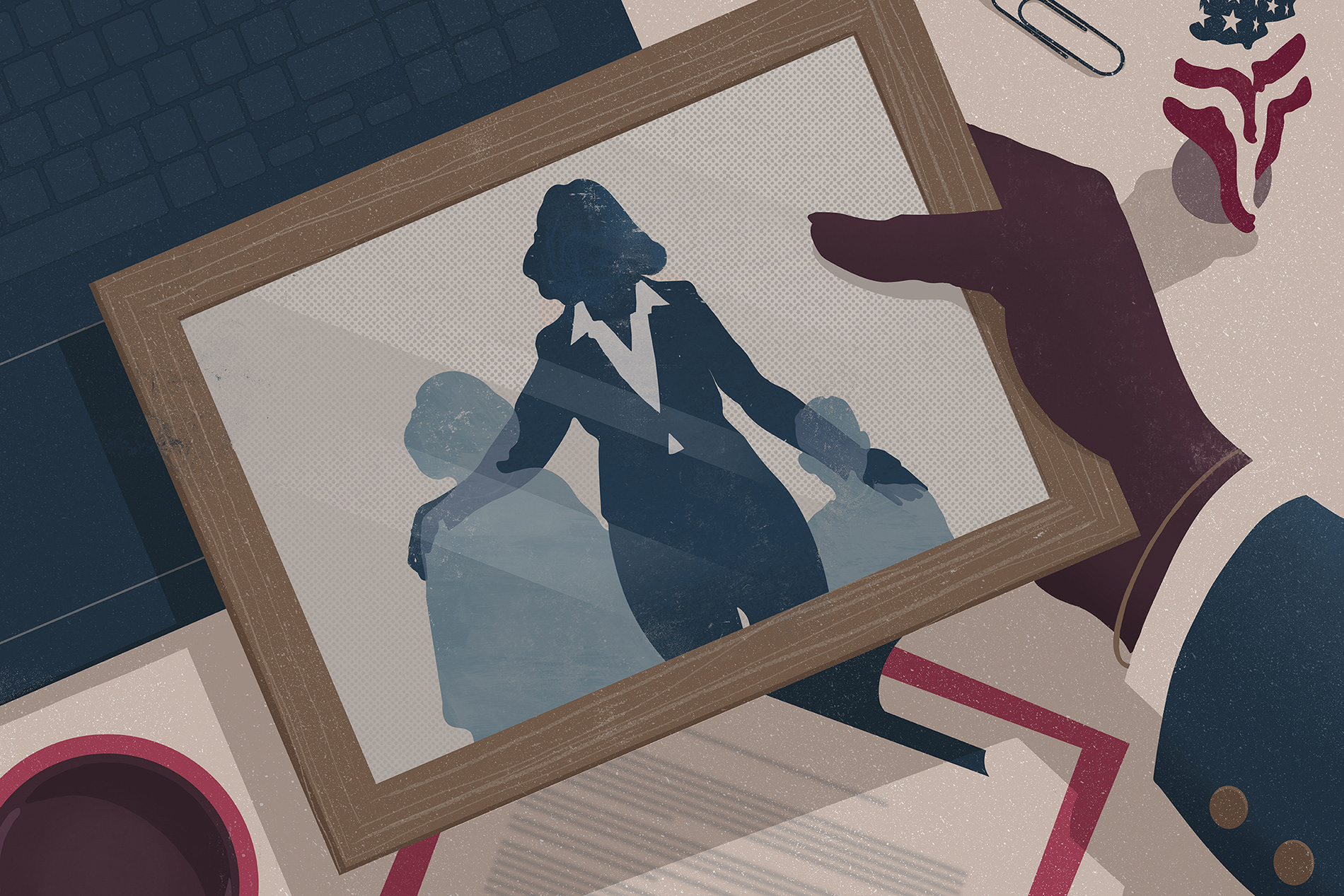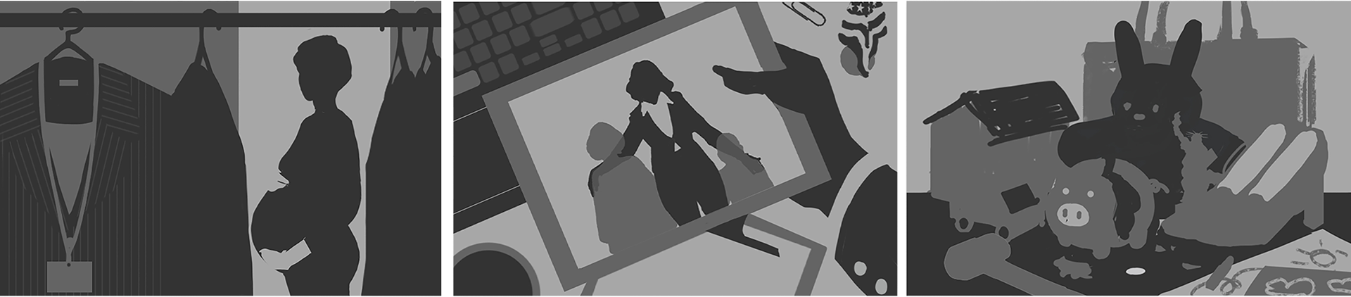 Illustration on the decrease in birth rates across America and the conflict between career and motherhood.